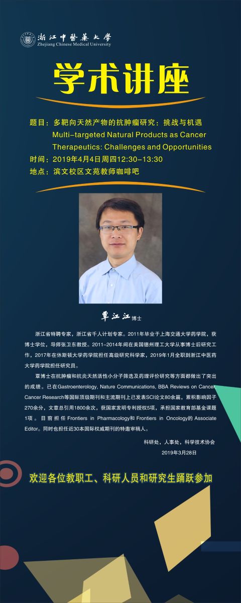 讲座预告:多靶向天然产物的抗肿瘤研究--挑战与机遇