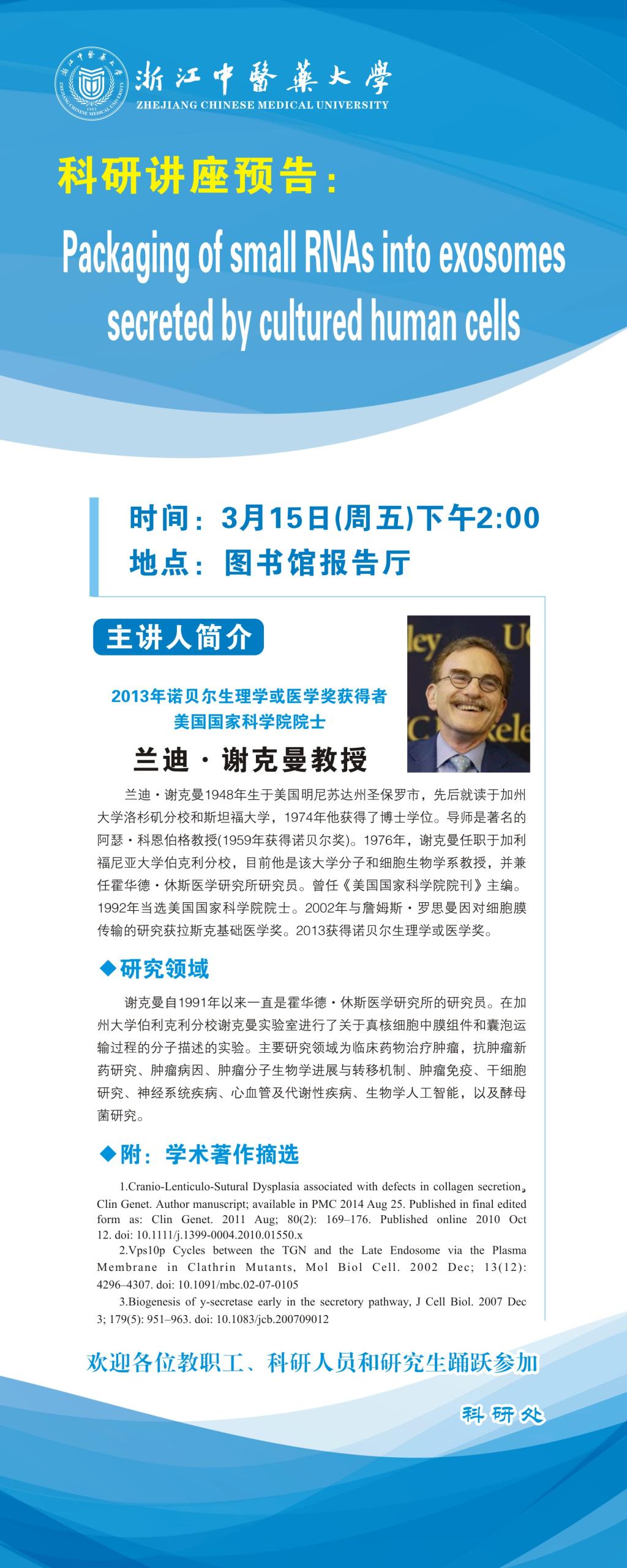 讲座预告:Packaging of small RNAs into exosomes secreted by cultured human cells