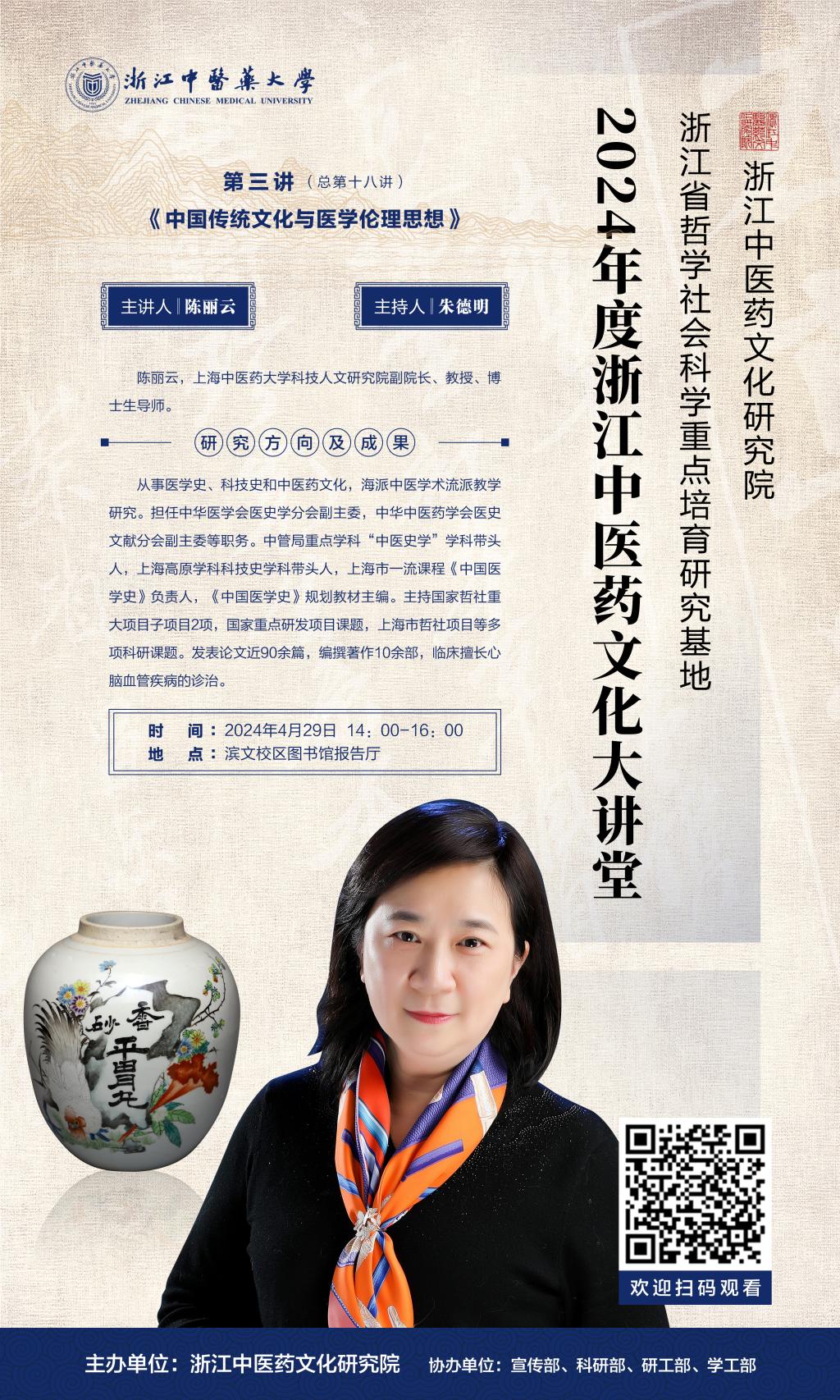 浙江中医药文化大讲堂第十八讲:陈丽云教授——中国传统文化与医学伦理思想