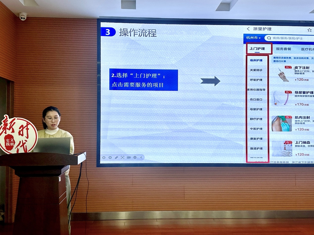 活动伊始,杭州市第三人民医院主管护师梁红霞为社区居民带来了《呼吸肌的功能锻炼》科普宣讲,深入浅出地讲解了呼吸肌锻炼的重要性与方法。志愿者团队围绕“浙里护理”智慧医疗平台展开宣讲,详细介绍线上预约护理、专家咨询等服务,让优质护理服务延伸到家。
