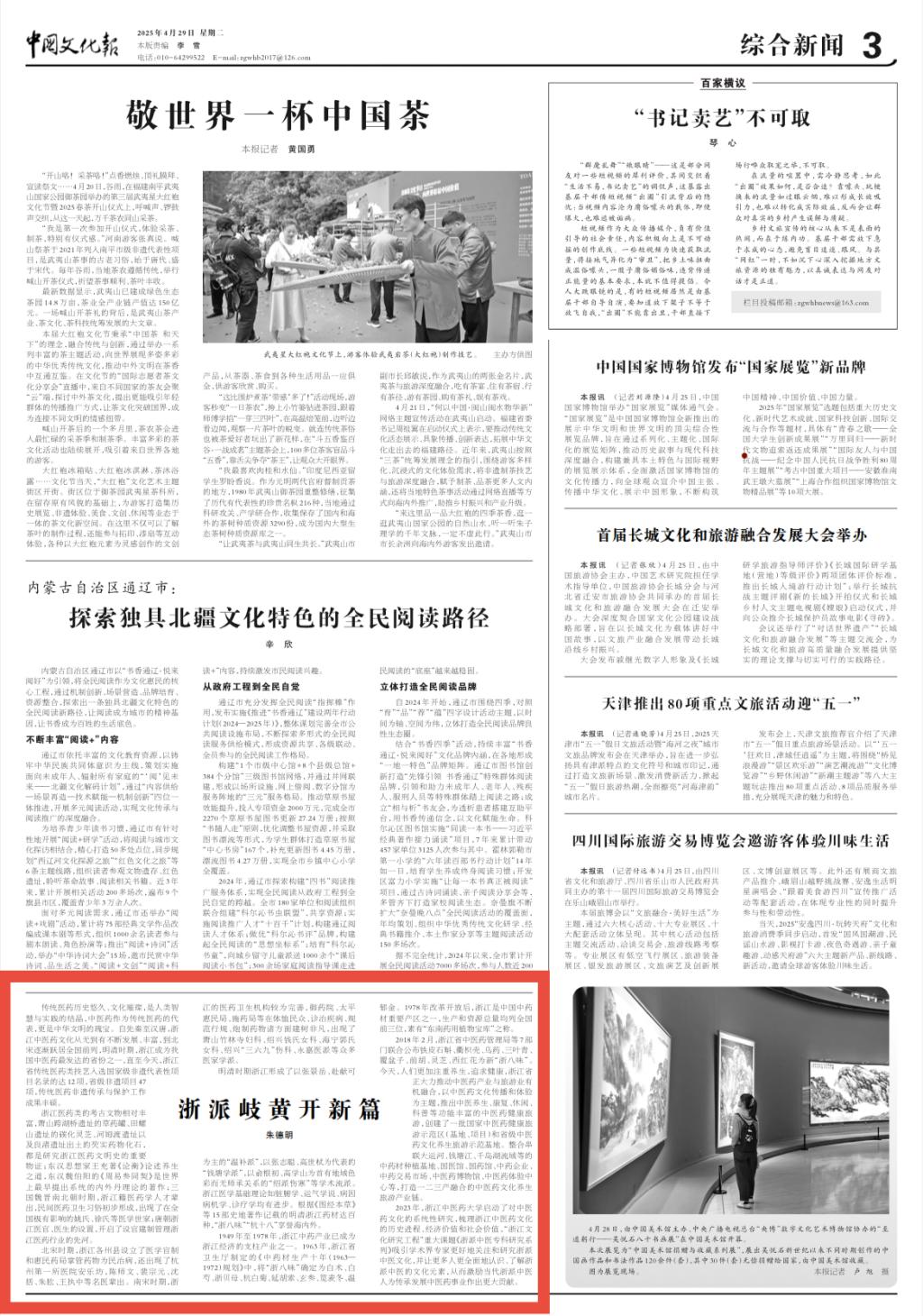 中国文化报:浙派岐黄开新篇
